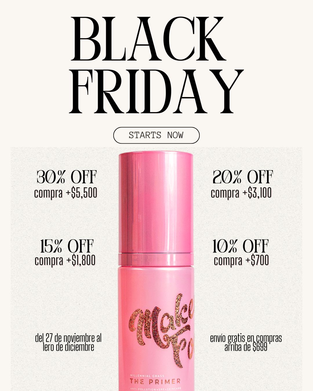 Desde el 27 de Noviembre de 2025 al 1ero de Diciembre de 2025 recibe los siguientes descuentos de acuerdo al monto acumulado en tu carrito de compra: